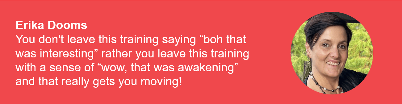 You don’t leave this training saying “boh that was interesting” rather you leave this training with a sense of “wow, that was awakening” and that really gets you moving!