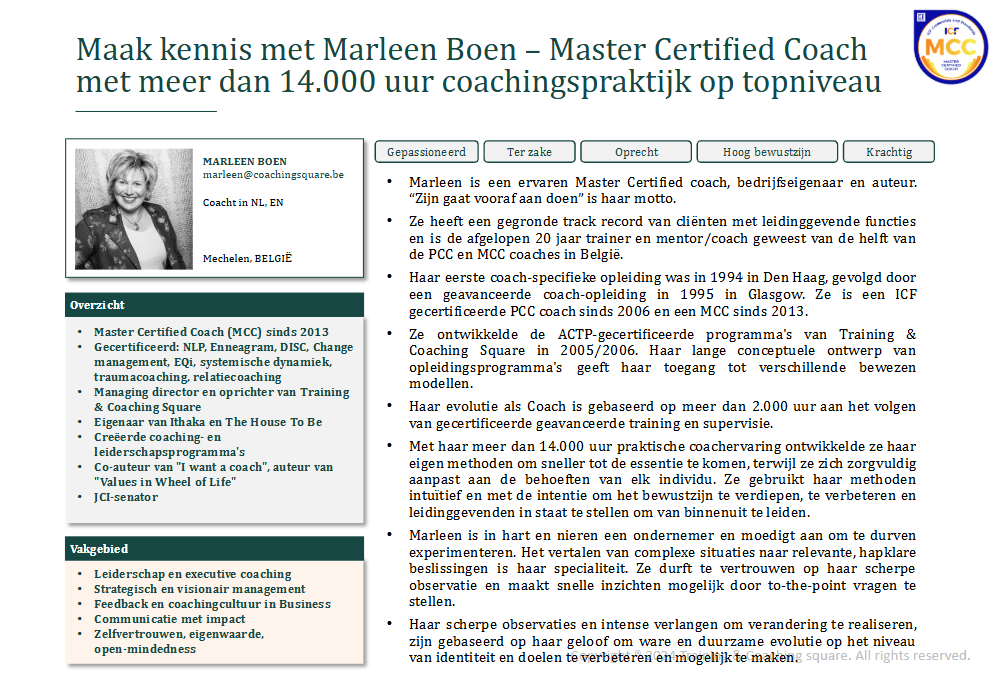 Maak kennis met Marleen Boen – Master Certified Coach met meer dan 14.000 uur coachingspraktijk op topniveau