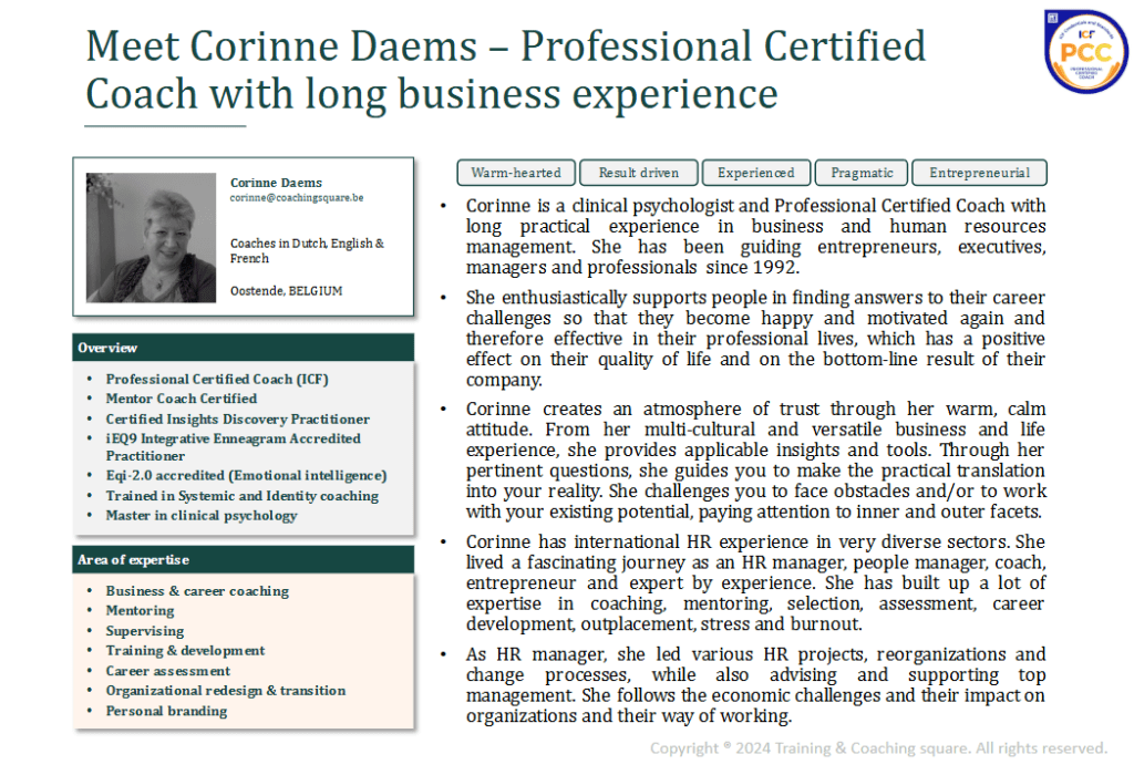 Meet Corinne Daems – Professional Certified Coach with long business experience