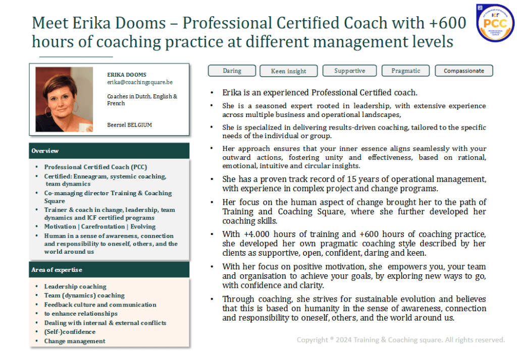 Erika Dooms – Professional Certified Coach with +600 hours of coaching practice at different management levels