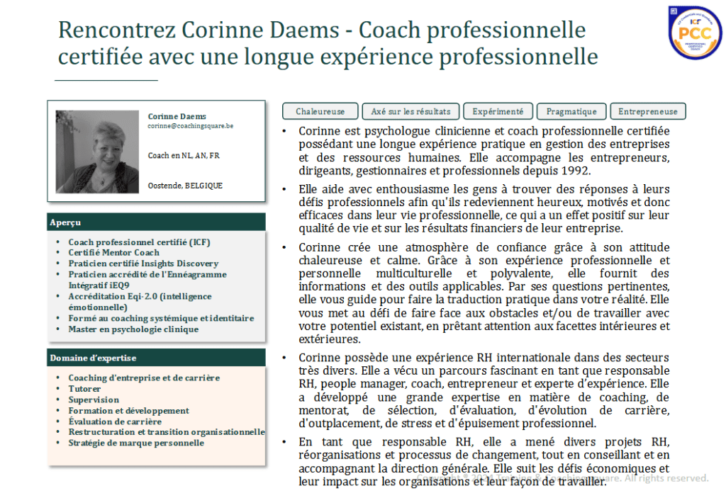 Rencontrez Corinne Daems – Coach professionnelle certifiée avec une longue expérience professionnelle