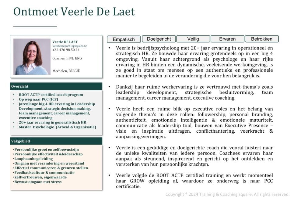 • Jarenlange big 4 HR ervaring in leadership development, strategic decission making, team management, carreer management, executive coaching